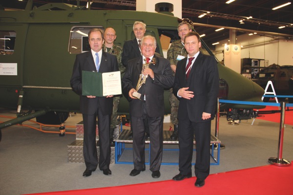 Odebranie nagrody Defender na targach MSPO w Kielcach. W pierwszym rzędzie: w środku Dyrektor ITWL – prof. nadzw. dr hab. inż. Ryszard Szczepanik, po lewej Zastępca ds. naukowych – dr hab. inż. Andrzej...